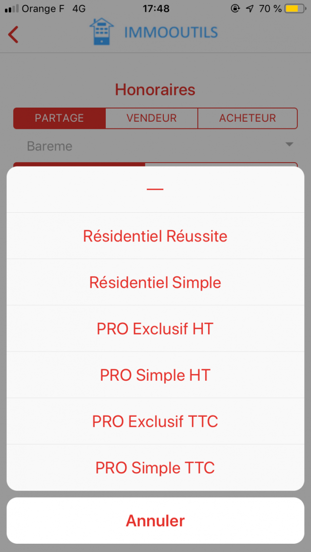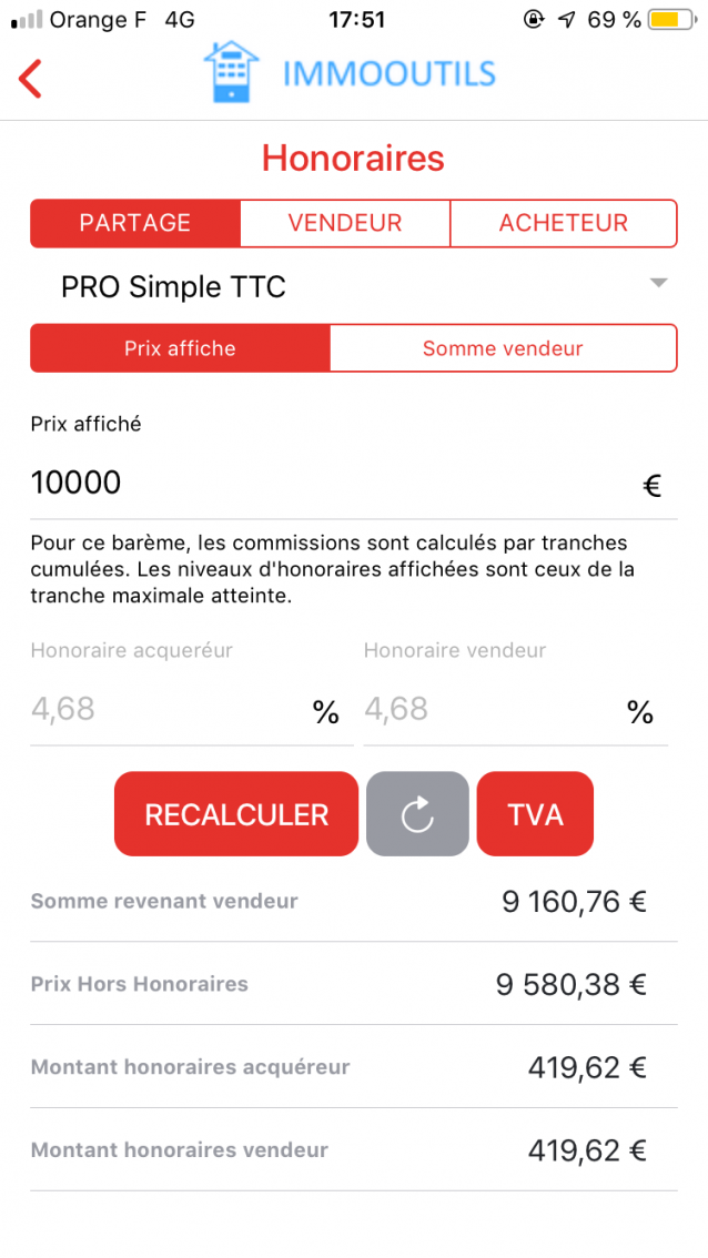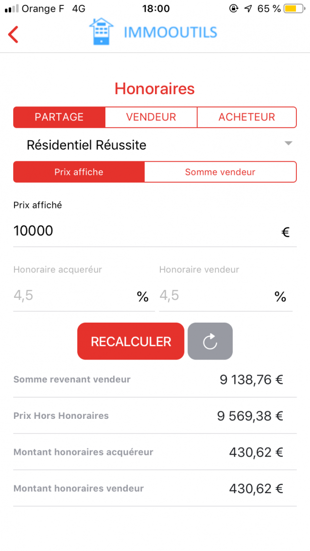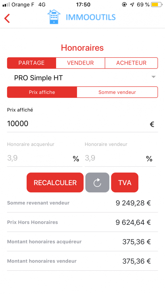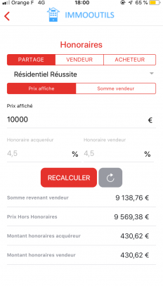 En tant que responsable d’agence immobilière c’est au top. Mes conseillers n’ont pas besoin de sélectionner les barèmes. Une fois que je les ai saisis dans la page de configuration ils s’appliquent automatiquement sur le téléphone de mon collaborateur. Je peux aussi gérer l’utilisation de l’application par mes collaborateurs. Je recommande.
