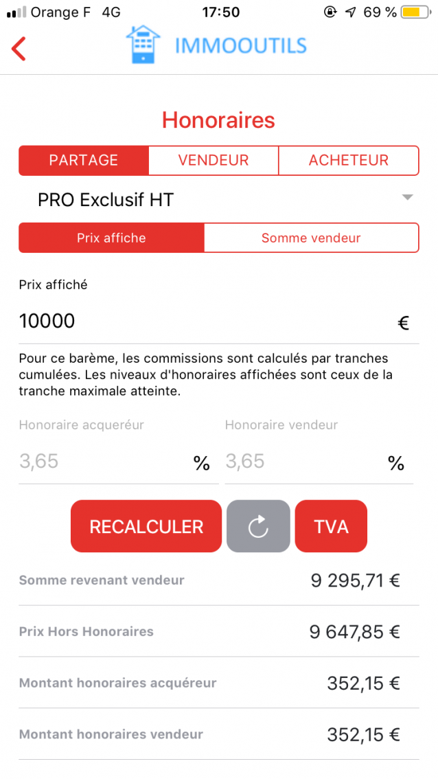 Super !!! Permet de faire des calculs dans les 2 sens entre le prix affiché FAI et la somme revenant au vendeur. En plus, le montant de la commission s’affiche et se modifie automatiquement….
